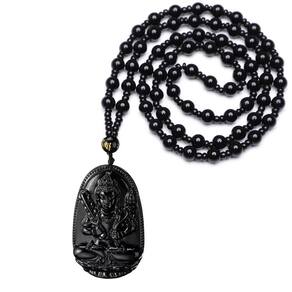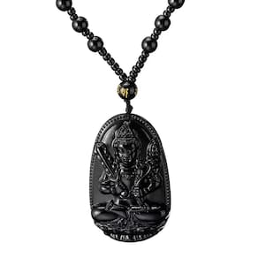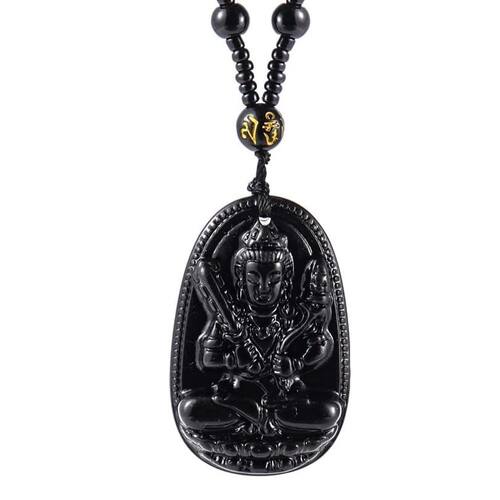 Colar Pingente Buda Equilíbrio Espiritual Relevo Preto 30 cm