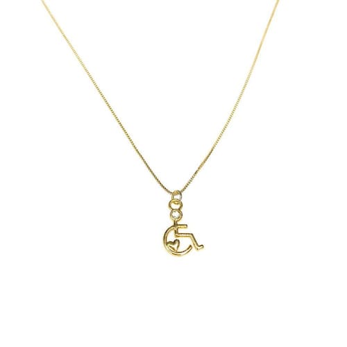 Corrente com pingente cadeirante com strass., banhado em ouro amarelo 18k. Simboliza pessoas com deficiencia fisica Tamanho da corrente a escolher 35 ou 45 cm Tamanho do pingente 18mm x 2mm espessura Banho corrente: ouro amarelo 18k 6 milesimos Garantia de 3 meses no banho e cravação das pedras mediante a defeitos de fabricação e não mau uso pelo cliente Caso aconteça um desgaste do banho, mudança de coloração, a peça será submetida a teste para averiguar se foi problema de fabricação ou mau uso. Nosso banho é denominado hipoalergênico pois não contém niquel na composição Marca: Le Rouge Joias