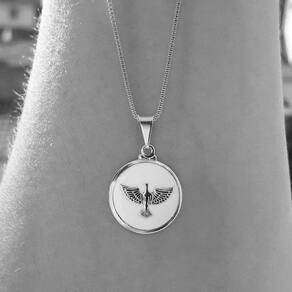 MODELO: Colar feminino do Divino Espírito Santo banhado com 100 milésimos de prata 925.