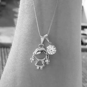 MODELO: Colar feminino de menina com ponto de luz banhado com 100 milésimos de prata 925.