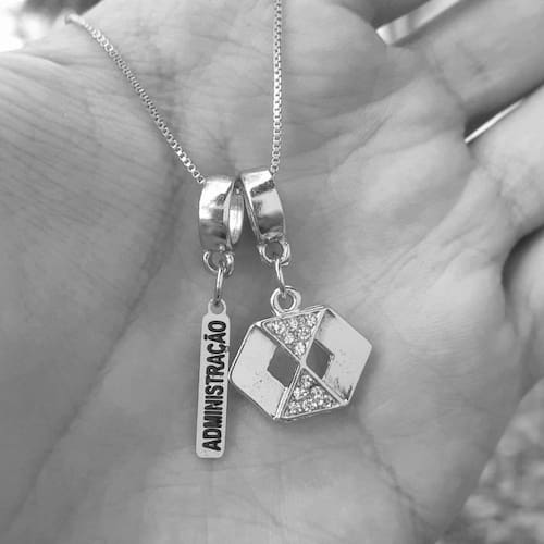 MODELO: Colar feminino da Profissão Administração banhado com 100 milésimos de prata 925.