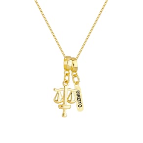 MODELO: Colar feminino da Profissão Direito banhado com 7 milésimos de ouro 18k.