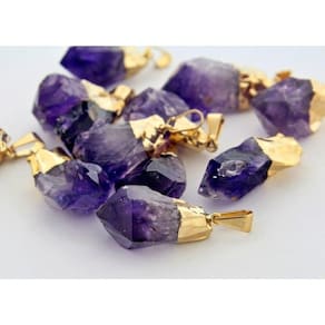 Pingente PONTA BRUTA Ametista pedra de garimpo sem lapidação e montagem em Dourado, ideal para colar e pulseiras, já vai montado.