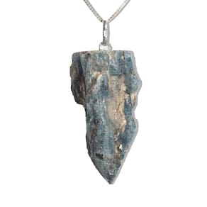 Colar de Prata 925 com pingente de Cianita Azul natural, pronto para uso.