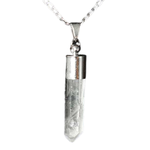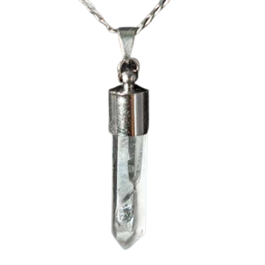Pingente Pontinha Cristal Laser natural pedra de garimpo sem lapidação, montagem na caixinha prateado, peça muito delicada, ja vai montado.
