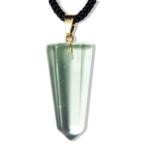 Detalhes do Colar NOME DAS PEDRAS: Obsidiana Verde COR DAS PEDRAS: Verde Bem Claro Foto Ilustrativa CORTE DAS PEDRAS: Sextavado Gerador CLARIDADE DAS PEDRAS: Brilhoso MEDIDA DAS PEDRAS: 30 x 11 Milimetros Pequena Variação Pra + ou - CASTOAÇÃO : Pino Preso Sob Furo + Perinha para Corrente em metal dourado PESO TOTAL DA JOIA: 20 Quilates Com Variação pra + ou - Marca: CristaisdeCurvelo