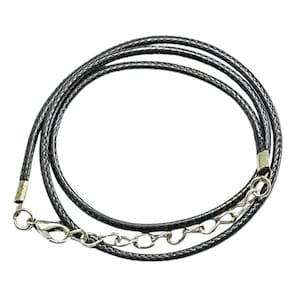 Cordão ou Colar, feito de fio encerado preto com fecho ajustável com corrente
