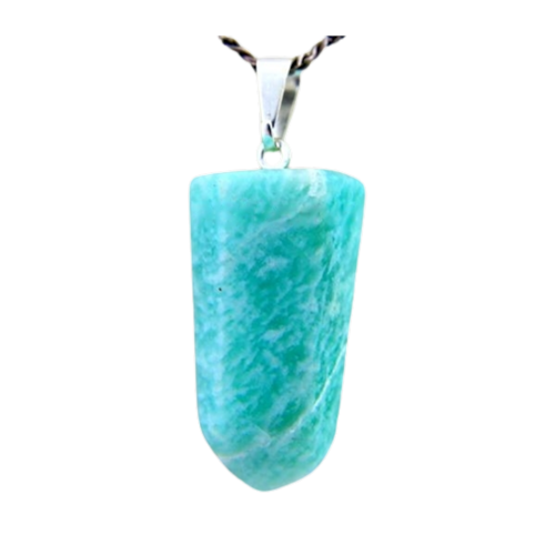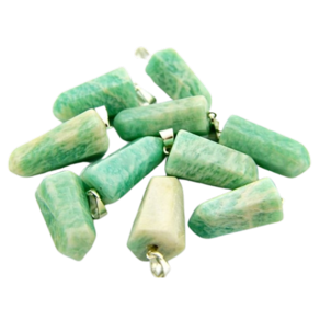 Pingente PONTA de Amazonita pedra de garimpo com lapidação artesanal montado no dourado , ideal para colar e pulseiras, ja vai montado.