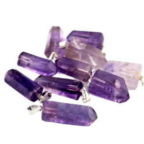 Pingente PONTA de Ametista pedra de garimpo com lapidação artesanal montado no dourado , ideal para colar e pulseiras, ja vai montado.
