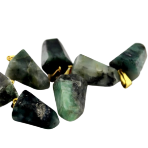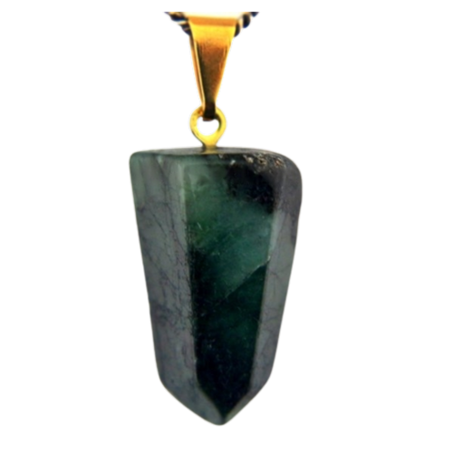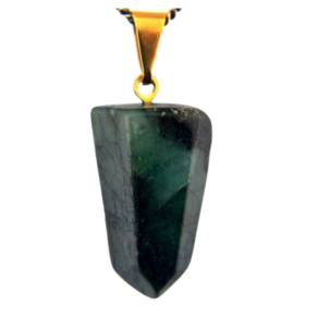 Pingente PONTA de Esmeralda pedra de garimpo com lapidação artesanal montado no dourado , ideal para colar e pulseiras, ja vai montado.