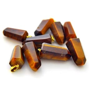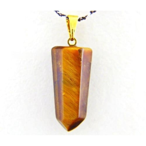 Pingente PONTA de Olho de Tigre pedra de garimpo com lapidação artesanal montado no dourado , ideal para colar e pulseiras, ja vai montado.