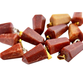 Pingente PONTA de Quartzo Vermelho pedra de garimpo com lapidação artesanal montado no dourado , ideal para colar e pulseiras, ja vai montado.