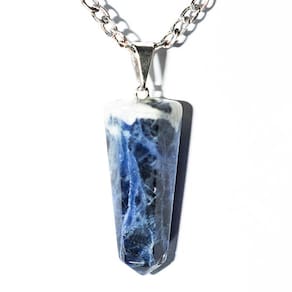 Adicione um toque de sofisticação ao seu visual com o Colar Pontinha Pedra Sodalita Azul. Beleza e elegância em um acessório. Compre agora!