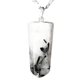 Pingente Pontinha Turmalina Preta no Quartzo Leitoso boa qualidade, pedra natural de garimpo, lapidação artesanal montado Pino e Presilha na Prata 950, ideal para colar e pulseiras, já vai montado .