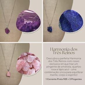 - Ametista: Canaliza a sabedoria, elevando a mente e trazendo clareza para o Reino Mental. - Quartzo Rosa: Cultiva o amor e a serenidade, nutrindo o Reino Emocional. - Lápis Lazuli: Inspira a verdade e o conhecimento profundo, iluminando o Reino Espiritual.