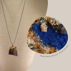 Colar Prata 925 Diamantado Azurita Bruta - P. Vecchio Joias