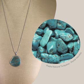A Turquesa, com seu azul vibrante e veios naturais, é valorizada por suas propriedades de cura e equilíbrio. Esta pedra antiga promove bem-estar e harmonia, destacando-se em qualquer joia.