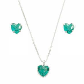 Colar Prata 925 Feminino 45cm Pingente Coração Brinco Verde