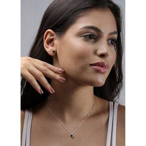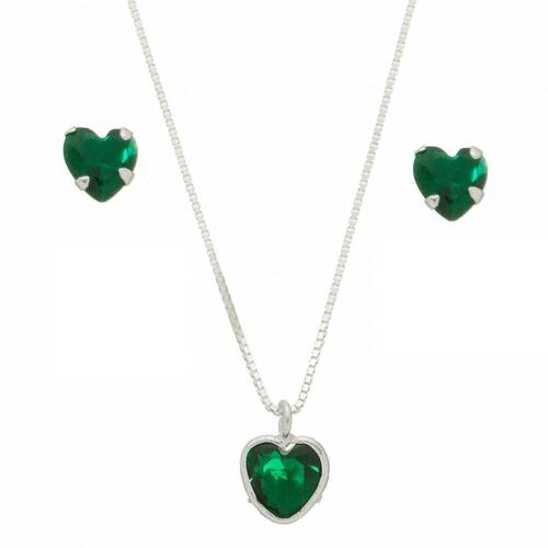 Colar Prata 925 Feminino 45cm Pingente Coração Brinco Verde