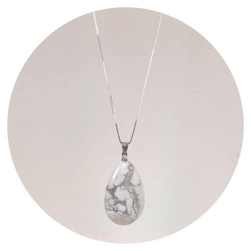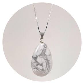 Um lindo colar prata 925 de malha veneziana de Howlita em formato de gota