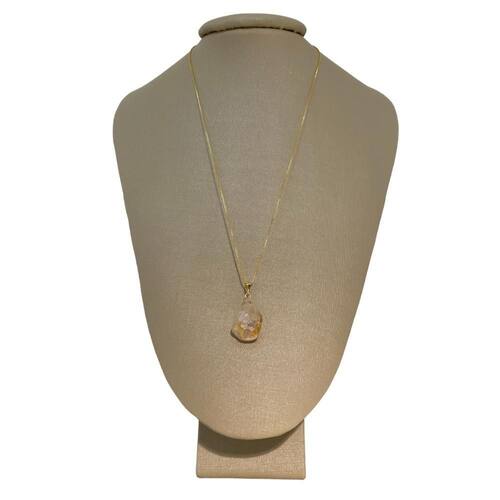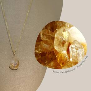 Com um pingente de citrino metalizado, essa joia é uma verdadeira obra-prima da natureza. O citrino exibe tonalidades que variam entre dourado e translúcido, e seu polimento acentua os detalhes naturais da pedra. É um verdadeiro destaque em qualquer ocasião.