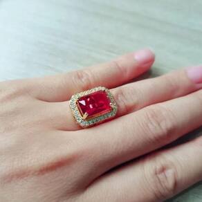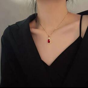 --01 Pingente vermelho retangular banhado ouro 18k;