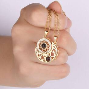 Trata-se de lindo conjunto composto por colar, pingente, par de brincos e anel + caixinha quadrada com dedicatória.