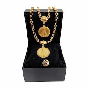 - O tamanho padrão da corrente é 45cm e da pulseira 20cm, mas elas têm um fecho que permite abrir a corrente para ajustar o tamanho ao seu gosto ou para retirar o pingente;