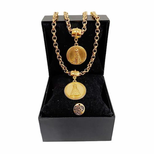 - Não desbota, nem descasca, ótima opção para presentear uma mulher especial, com um belo e poderoso Conjunto da Nossa Senhora!