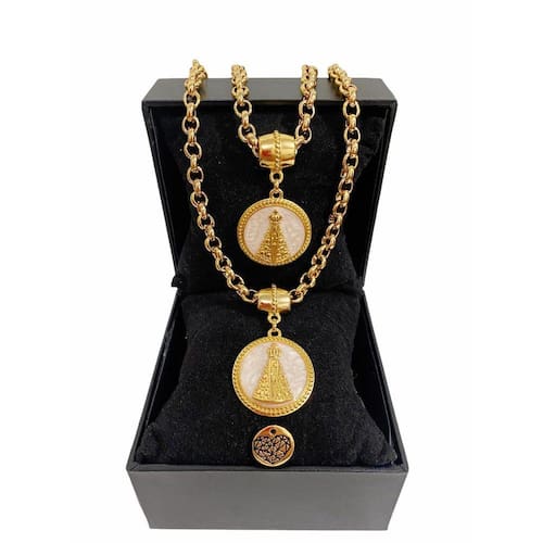 - Não desbota, nem descasca, ótima opção para presentear uma mulher especial, com um belo e poderoso Conjunto da Nossa Senhora!