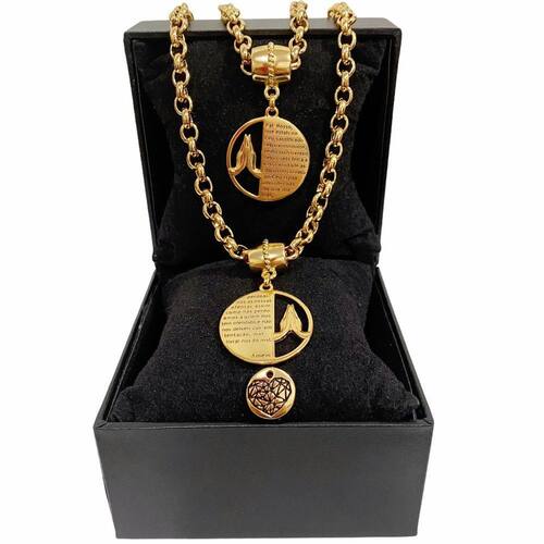 - Não desbota, nem descasca, ótima opção para presentear uma mulher especial, com um belo e poderoso Conjunto Colar e Pulseira do Pai Nosso!