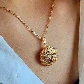 Vantagens desse Relicário: Design clássico e versátil: O formato redondo proporciona um visual moderno e elegante, combinando com diversos estilos. Folheado a ouro: Garante um acabamento sofisticado e duradouro, com um brilho intenso. Espaço para foto: Dentro do relicário, coloque sua foto, enviamos pronto com a foto da sua escolha em caixinha especial. Sentimentalismo: Uma forma especial de manter seus entes queridos sempre por perto. Elegância: Um acessório perfeito para diversas ocasiões, do dia a dia a eventos especiais. Presente perfeito: Ideal para presentear em diversas ocasiões, como aniversários, Dia dos Namorados, Dia das Mães e datas especiais.