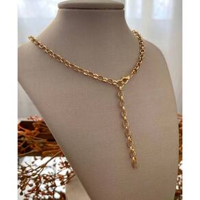 Este colar é banhado a ouro, com um verniz especial que garante alta durabilidade e resistência, tornando-o uma escolha ideal para o dia a dia ou ocasiões especiais.