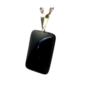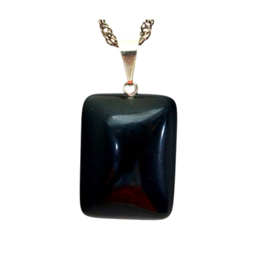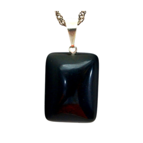 Exude elegância e mistério com o Colar Retangular Liso Obsidiana Negra. O pino prateado adiciona um toque sofisticado. Adquira já!