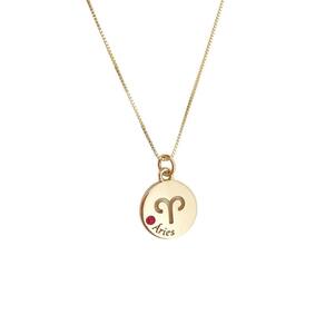 Icolar zodiac signo áries - de 21 de março a 20 de abril; Colar com pingente com medalha de signo de áries, que vem com uma pedrinha com a cor do Signo descrito de strass, banhado a ouro amarelo 18k metal nobre . De um lado da medalha vem gravado por escrito o signo e a pedrinha colada com uma cola Específica para joias e do outro é gravado por escrito a característica mais forte da Personalidade desse signo. Cor do strass: vermelho Curiosidade: o vermelho traz autoconfiança, coragem, valentia e atitude otimista Palavras chaves da cor: atração, amor, paizão, desejo. Característica do signo: coragem Corrente tipo veneziana com 1,00 mm de espessura x 45 cm de comprimento. Tamanho do pingente: 16,00mm de diâmetro x 2,40 de espessura. Acabamento: liso Banho de 6 milesimos co camada de verniz Peças feitas em latão metal baixo e banhadas ouro amarelo 18k metal nobre Garantia de 3 meses no banho e cravação das pedras mediante a defeitos de fabricação e não Mau uso pelo cliente Caso aconteça um desgaste do banho, mudança de coloração, a peça será submetida a teste Para averiguar se foi problema de fabricação ou mau uso. Nosso banho é denominado hipoalergênico pois não contém niquel na composição Marca: Le Rouge Joias Ean: 7795992977456