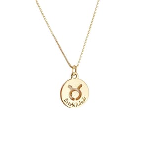 Colar zodiac signo touro - de 21 de abril a 20 de maio colar com pingente com medalha de signo de touro, que vem com uma pedrinha com a cor do Signo descrito de strass, banhado a ouro amarelo 18k metal nobre . De um lado da medalha vem gravado por escrito o signo e a pedrinha colada com uma cola Específica para joias e do outro é gravado por escrito a característica mais forte da Personalidade desse signo. Cor do strass: lilás/violeta Curiosidade: o lilás é a poderosa para a psique, associada ao funcionamento do cérebro e Estimula a imaginação e intuição, além de ser forte sedativo. Palavras chaves da cor: sabedoria, criatividade, independência, dignidade, serenidade Característica do signo: estabilidade Corrente tipo veneziana com 1,00 mm de espessura x 45 cm de comprimento. Tamanho do pingente: 16,00mm de diâmetro x 2,40 de espessura. Acabamento: liso Banho de 6 milesimos co camad0a de verniz Peças feitas em latão metal baixo e banhadas ouro amarelo 18k metal nobre Garantia de 3 meses no banho e cravação das pedras mediante a defeitos de fabricação e não Mau uso pelo cliente Caso aconteça um desgaste do banho, mudança de coloração, a peça será submetida a teste Para averiguar se foi problema de fabricação ou mau uso. Nosso banho é denominado hipoalergênico pois não contém niquel na composição Marca: Le Rouge Joias Ean: 7795992977524