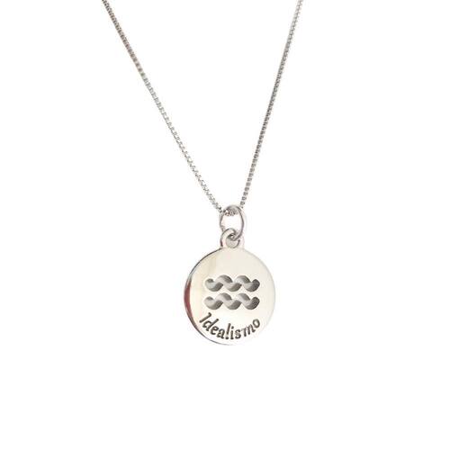 Colar zodiac signo aquário - de 21 de janeiro a 18 de fevereiro Colar com pingente com medalha de signo de aquário, que vem com uma pedrinha com a Cor do signo descrito de strass, banhado a platina metal nobre . De um lado da medalha vem gravado por escrito o signo e a pedrinha colada com uma cola Específica para joias e do outro é gravado por escrito a característica mais forte da Personalidade desse signo. Cor do strass: azul escuro Curiosidade: o azul escuro age como um forte sedativo na mente, permitindo-se uma conexão Maior com a nossa parte intuitiva. Palavras chaves da cor: estabilidade, lealdade, confiança, sabedoria, mente, inteligência, fé, Verdade e eternidade Característica do signo: idealismo Corrente tipo veneziana com 1,00 mm de espessura x 55ou 60cm de comprimento. Tamanho do pingente: 16,00mm de diâmetro x 2,40 de espessura. Acabamento: liso Banho de 6 milesimos co camada de verniz Peças feitas em latão metal baixo e banhadas a platina metal nobre Garantia de 3 meses no banho e cravação das pedras mediante a defeitos de fabricação e não Mau uso pelo cliente Caso aconteça um desgaste do banho, mudança de coloração, a peça será submetida a teste Para averiguar se foi problema de fabricação ou mau uso. Nosso banho é denominado hipoalergênico pois não contém niquel na composição Marca: Le Rouge Joias Ean: 7795992997805