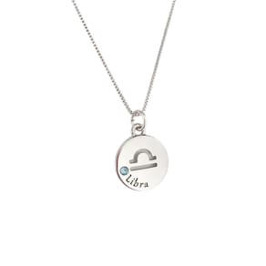 Colar com pingente com medalha de signo de Libra, que vem com uma pedrinha com a cor do
