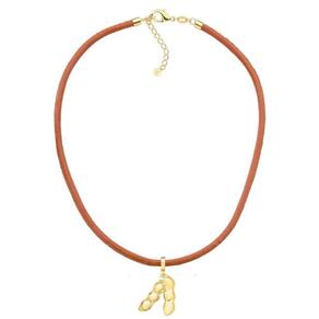 Colar Soja Maciça No Couro Caramelo Revestido Em Ouro
