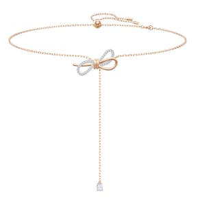Swarovski Coleção de joias de colar e pulseira, cristais transparentes, acabamento de ródio, Metal, cristal - Comprimento ajustável: 11 3/4 x 41 3/4 polegadas - Sofisticado e romântico: este pingente de motivo de arco combina a precisão e a qualidade dos cristais Swarovski brilhantes com um símbolo significativo de amor, tornando-o um ótimo presente para você ou alguém especial - Moderno e significativo: a combinação do elegante design de arco 3D de metal misto com cristais brancos e uma delicada corrente banhada a ouro rosa exala uma sofisticação glamorosa e divertida - Projetado para durar: as joias Swarovski manterão seu brilho ao longo do tempo quando práticas simples de cuidado forem observadas; remova antes de entrar em contato com água, loções ou perfumes para prolongar a vida útil de suas joias - Paquera e divertido: o design delicado, o aspecto de metal misto e as linhas elegantes deste colar com pingente o tornam um acessório versátil que adiciona um glamour jovem e legal à sua coleção atual - Itens entregues: 1 x colar com pingente de arco Swarovski Lifelong com cristais Swarovski brancos, tom de ouro rosa e revestimento de metal misto de ródio, ajustável de 28 a 40 cm de comprimento, com caixa Swarovski