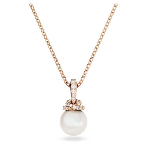 Swarovski Originalmente coleção de joias, colares e brincos, Zircônia cúbica, Zircônia cúbica - Medidas: Comprimento (mínimo – máximo): 38 – 43 cm, Tamanho do motivo: 2 x 1 cm - Elegância simplista: Este colar com pingente com acabamento em tom de ouro rosa é embelezado com reviravoltas de cristais pavé transparentes e uma única pérola luminosa para um visual atemporal e refinado - Clássico e versátil: com pedras brilhantes e uma pérola de cristal lindamente trabalhada, este design sofisticado faz uma declaração definitiva tanto para roupas do dia a dia quanto para ocasiões mais formais - Beleza versátil: transforme seu visual sem esforço do dia para a noite com esta peça clássica que nunca sairá de moda como um acessório elegante para a noite - Projetado para durar: as joias Swarovski mantêm seu brilho quando práticas simples de cuidado são observadas; remova antes de entrar em contato com água, loções ou perfumes e polir com um pano sem fiapos - Itens entregues: (1) Colar com pingente Swarovski Originalmente com pérola de cristal e pedras de pavé transparentes em uma configuração de acabamento em tom de ouro rosa, completo com caixa de colar Swarovski