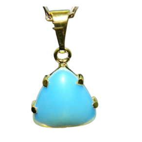 Pingente Trillion Cabochão Pedra da Lua Opalina castoação na garra dourado com perinha para passar o cordão Pedra Genuina com origem garimpo lapidação e montagem manual