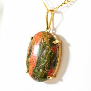 Pingente Unakita Cabochão Oval Pedra extra castoação na garra prata com perinha para passar o cordão Pedra Genuina com origem garimpo lapidação e montagem manual