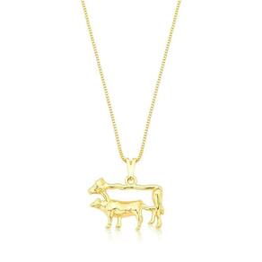 Este colar foi elaborado com Corrente Veneziana e um lindo pingente com a silhueta de uma vaca e seu bezerro. Com detalhes minimalistas, seu Revestimento em Ouro traz a qualidade e beleza que esta joia merece. Um símbolo gracioso de amor ao Agro!