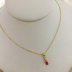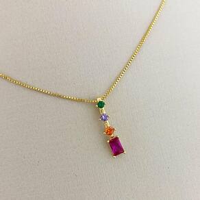 Colar Veneziana Com Pingente de Pedras em Zircônia Colorida Banhado a Ouro