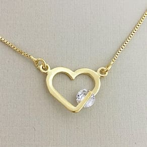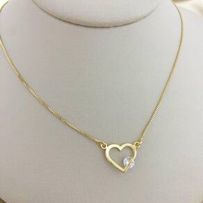 Colar Veneziana Pingente Coração com Ponto de Luz em Zircônia Banhado a Ouro