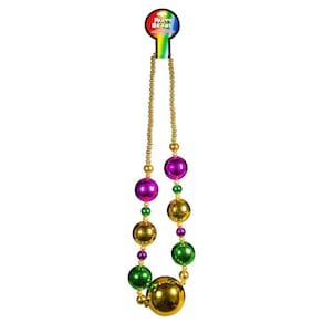 - MARDI GRAS 2023 | Prepare-se para a celebração! | É hora de deixar os bons momentos rolarem com nosso colar Jumbo Mardi Gras de 112 cm. É o acessório perfeito para a sua celebração do Mardi Gras. Imagine todos os elogios que você receberá com este bad boy. É polido, brilhante e parece metal real (mas não vai pesar). Além disso, as cores tradicionais de Mardi Gras de roxo, verde e dourado são intercaladas com contas menores, fazendo você se destacar na multidão.