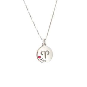 O pingente do colar possui uma medalha com o símbolo do signo de Áries, acompanhado por uma pedrinha de strass na cor vermelha, que representa a cor do signo. Essa pedrinha é colada com uma cola específica para joias, garantindo sua durabilidade.