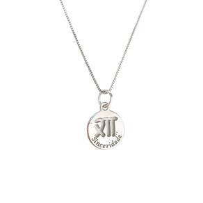 A corrente tipo veneziana tem 1,00 mm de espessura e 45 cm de comprimento, proporcionando um ajuste perfeito ao pescoço. Já o pingente possui 16,00mm de diâmetro e 2,40 mm de espessura, com acabamento liso e banho de 6 milésimos com camada de verniz para maior durabilidade.