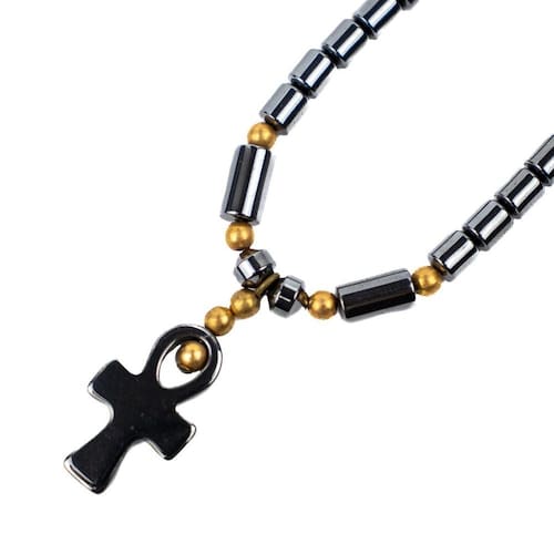 Este colar elegante une o poder da hematita com o simbolismo espiritual, símbolo da vida eterna e proteção. A pedra hematita, reconhecida por suas propriedades energéticas de equilíbrio e proteção, é conhecida por trazer coragem e fortalecer o corpo e a mente.